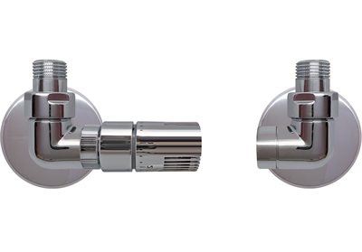 Corner Rum, ½" vinkelløbende hjørneventilsæt med rumtermostatføler, forkromet.