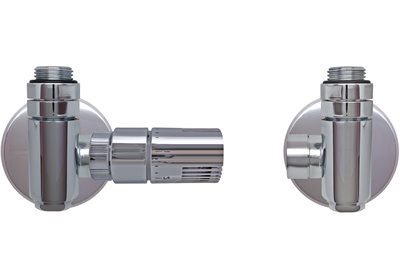 Corner Combi Rum, ½" vinkelløbende hjørneventilsæt til kombineret central- og elvarme med rumtermostatføler, forkromet.