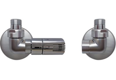 Corner Rum, ½" vinkelløbende hjørneventilsæt med rumtermostatføler, børstet.
