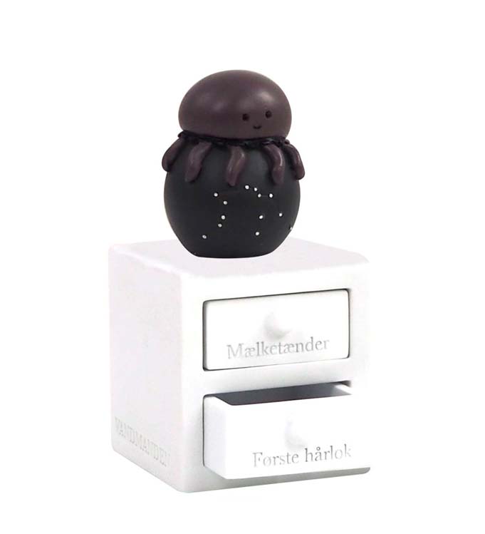 Sød lille æske fra Kids by Friis formet som en lille kommode med 2 skuffer, hvori der kan ligge en hårlok og mælketænder. Ovenpå den lille æske sidder en kugle med et enkelt stjernebillede (der viser Vandmanden) sammen med en lille vandmand, der symboliserer stjernetegnet af samme navn. En sød gave til fx barsel eller dåb. Materiale: polyresin Måler 6 x 6 x 11,5 cm NB: denne æske er ikke legetøj og bør ikke stilles så barnet selv kan nå den.