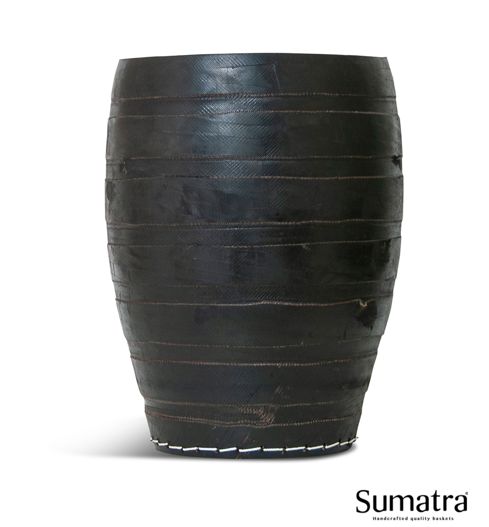 Sumatra dekokurve med flot mønster som giver kurvene et særpræget look.Anvend kurvene som blomsterkrukker, hvor det sorte rå gummi vil give et smukt spil og en god kontrast i haven.Kurvene kan også bruges til opbevaring både inde og ude.Kurvene sælges enkeltvis eller som sæt.Small: Ø30 x 40 cmMedium: Ø35 x45 cmLarge: Ø45 x 52 cm.