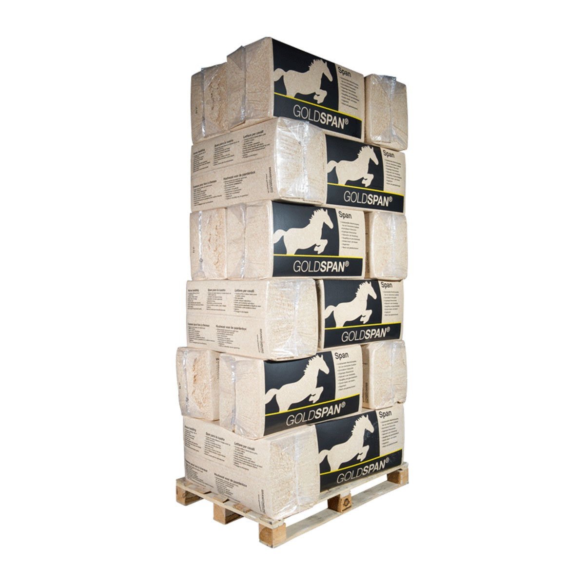 Bemærk: Dette produkt leveres kun til Sjælland Goldspan spåner er premium strøelse til en sund hest og et optimalt staldmiljø! Goldspan spåner er kendt for deres førsteklasses kvalitet og behagelige aroma, der skaber et sundt og friskt miljø i hesteboksen. Her får du en palle med 18 baller af 24-25 kg. spåner. Spånerne er fremstillet af 100 % ubehandlet nåletræ og der er ca. 550 liter løs volumen pr. balle (80 liter komprimeret). Ballerne er lette at håndtere og spånerne drøje i brug. De støvreducerede spåner er skånsomme for både hestens og ejerens luftveje og bidrager samtidig til en blød, fjedrende overflade, der giver optimal støtte til hestens hove. Spåner med god sugeevne Med en fremragende sugeevne absorberer Goldspan spåner effektivt væske og reducerer ammoniakdannelse, hvilket hjælper med at opretholde et hygiejnisk og lugtfrit staldmiljø. Selvom de primært er udviklet til heste, kan spånerne også anvendes som strøelse til andre kæledyr som fjerkræ, gnavere og kaniner. Sådan bruger du Goldspan spåner Rengør boksen grundigt inden opstart. Fordel 3-5 baller afhængigt af boksens størrelse. Fjern hestepærer og våde områder dagligt for at bevare et sundt underlag. Til opfriskning bruges ca. 1-1,5 balle om ugen. Vend bundlaget jævnligt for at bevare madrassens affjedring og holdbarhed. Produktinformation Materiale: 100 % ubehandlet nåletræ Antal baller per palle: 18 stk. Vægt per balle: 24-25 kg Volumen: ca. 550 liter løs volumen pr. balle (80 liter komprimeret) SPF godkendt Goldspan spåner er et godt valg for dig, der ønsker en kvalitetsstrøelse, der sikrer både komfort og god hygiejne i stalden.