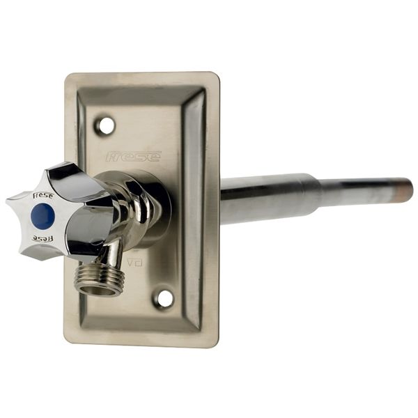 Frese Gårdpostehane er en udendørs aftapventil, der kan monteres i ydervægge med vægtykkelser fra 300 mm til 500 mm.