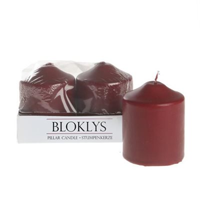 Pillar candle, 4/tray with shrink, H 8cm, Dia. 6,20cm 4/box, Red