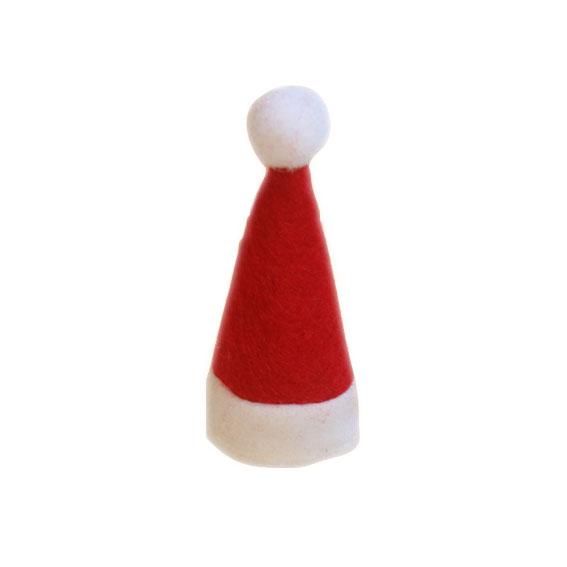 Lille nissehue i filt. Måler ca. 8 cm