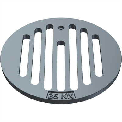 Risten er lavet af støbejern og passer til Duco 200 mm rund eller firkantet karm og anvendes til områder hvor der kun kommer personbilstrafik. Risten er hængslet i den ene side med en rustfri bolt.