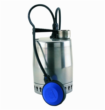 Grundfos kælderpumpe Drænpumpe i rustfri stål Type KP250-A1 Med niveaukontrol for automatisk start/stop Ydelse ved 4 meter løftehøjde ca. 2 l/s Spænding 1×230V Vægt 7,2kg Afgang/tilslutning RP 1.1/4"