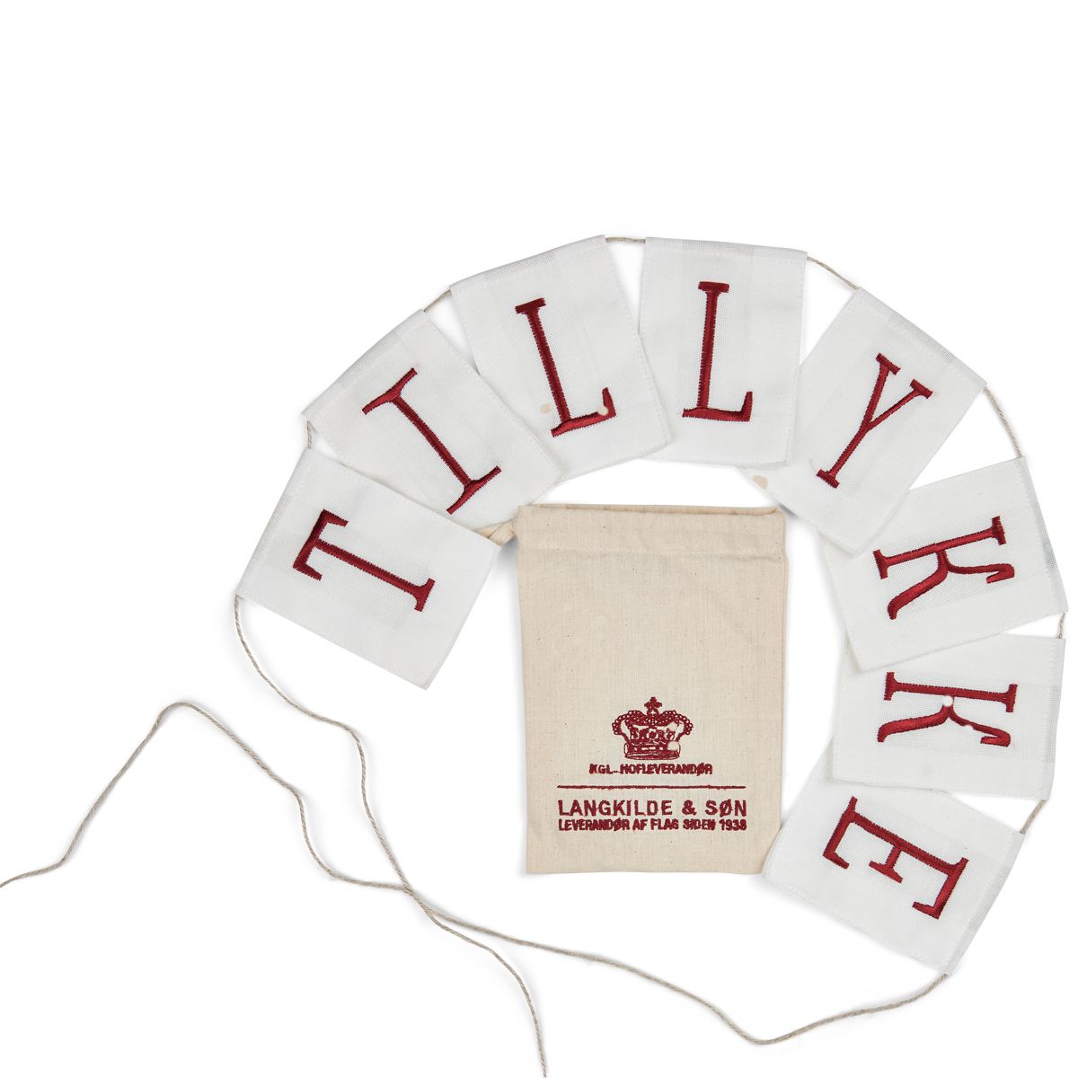 Glæd en heldig person, som skal fejres med denne smukke Tillykke-ranke med 8 store bogstavflag i original flagdug fra Langkilde & Søn. Flagene er sat på 275 cm. lang line af sejlmagergarn og er smuk og festlig at hænge på væggen, i vinduet eller over festbordet, når fødselaren, konfirmanden, studenten eller brudeparret skal fejres. Flagranken leveres i en smuk stofpose med broderet logo - perfekt til opbevaring af ranen, når der ikke er fest og fødselsdag. Langkilde & Søn har syet smukke originale Dannebrogsflag lige siden 1938 og er af den grund også opnået at blive Kgl. Hofleverandør. Med et flag fra Langkilde & Søn har du altid et smukt og klassisk flag, med farver og kvalitet, der kan holde til Danmarks vejr og vind. Et flag fra Langkilde & Søn er perfekt til at fejre alle livets fester, mærkedage og højtider. Materiale: Sejlmagergarn. Flag: original flagdug (fås kun hos Langkilde & Søn, Kgl. Hofleverandør) Mål: Line: 275 cm. Flag: 7 x 10 cm. Se alle varer fra Langkilde & Søn