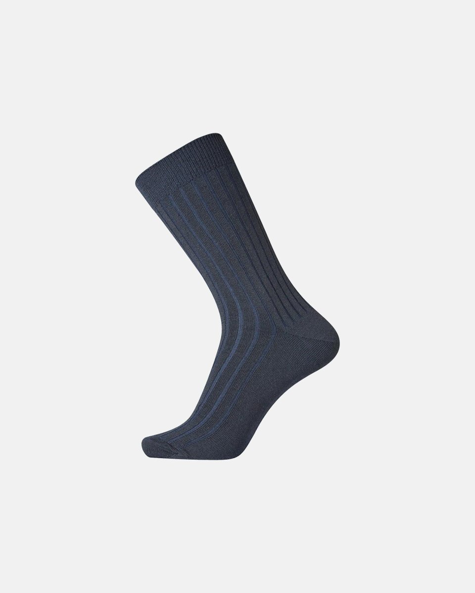 Strømpe fra Egtved i behagelig og lækker rib-strikket uld kvalitet. Mørkeblå ensfarvet, som giver det klassiske look. Findes i størrelserne 40-45 og 45-48.