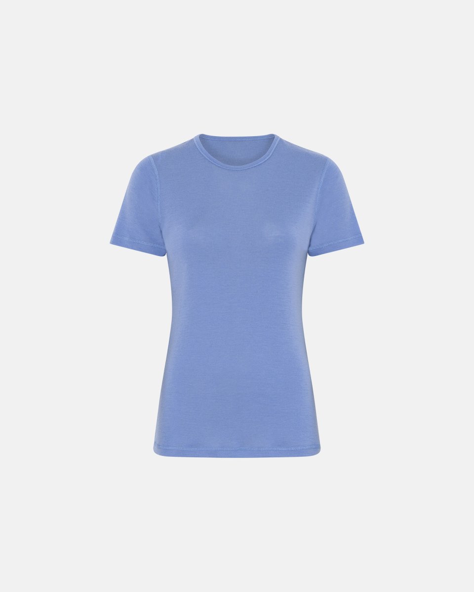 Køb en dueblå t-shirt fremstillet i 100% uld som kan hjælpe dig med at holde varmen samtidig med at være tilpas tempereret. Takket være uldens temperaturregulerende og isolerende egenskaber, kan du bruge t-shirten både på de varme og de kolde dage.
