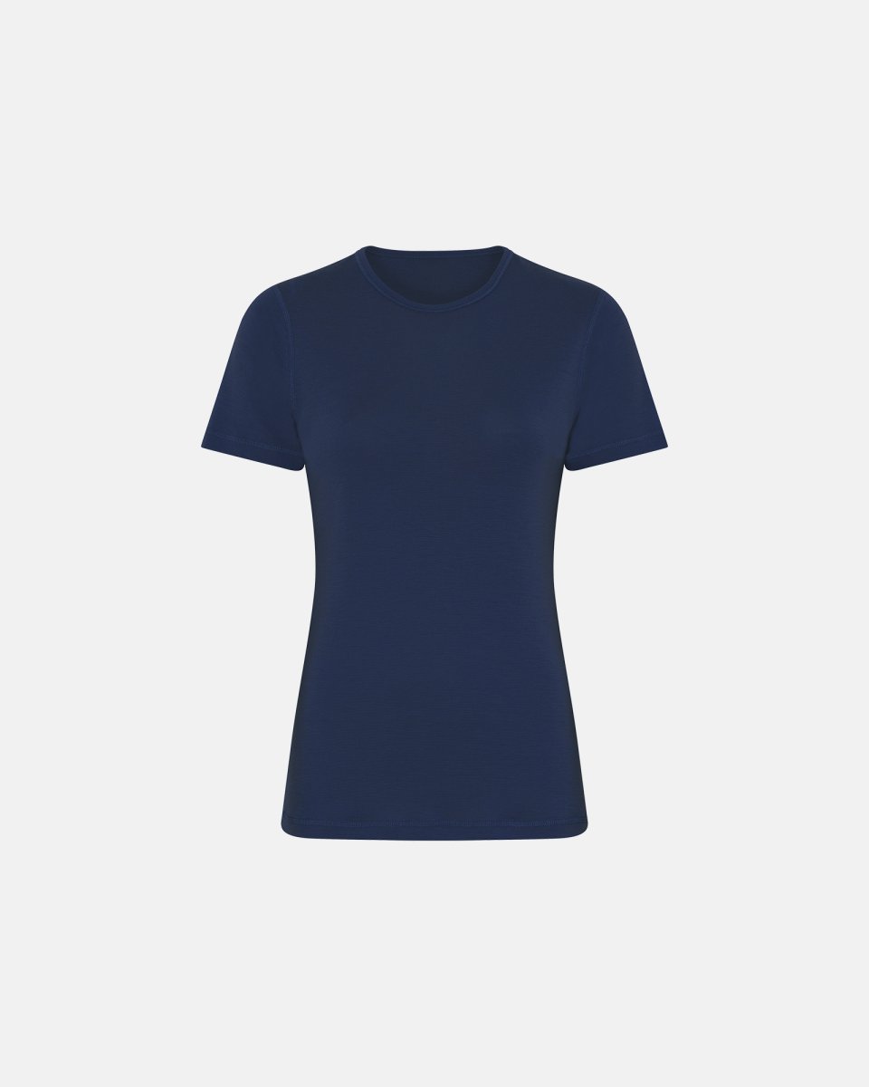 Køb en navy t-shirt fremstillet i 100% uld som kan hjælpe dig med at holde varmen samtidig med at være tilpas tempereret. Takket være uldens temperaturregulerende og isolerende egenskaber, kan du bruge t-shirten både på de varme og de kolde dage.