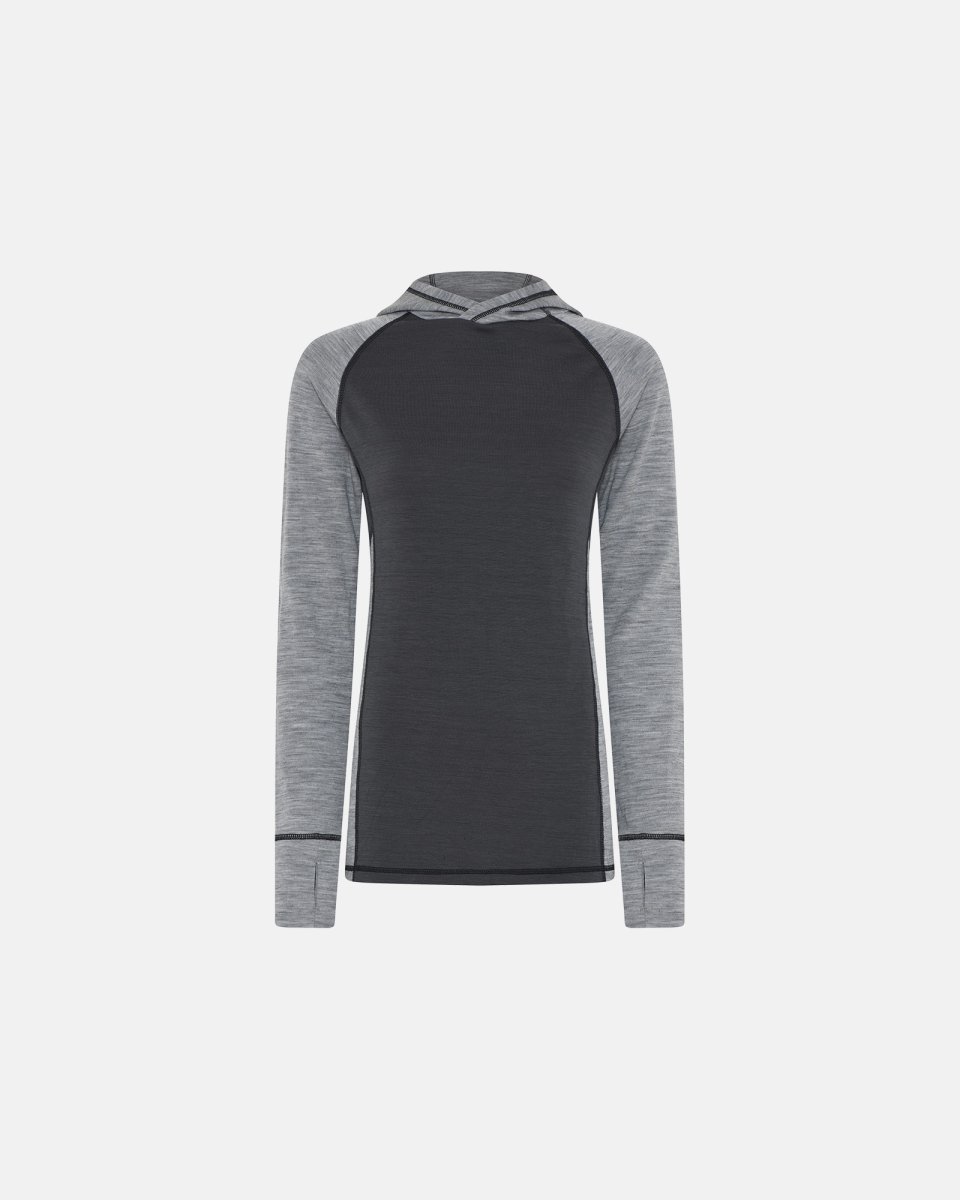 Langærmet t-shirt med hætte | 100 % merino uld | Grå - S - Dovre Women