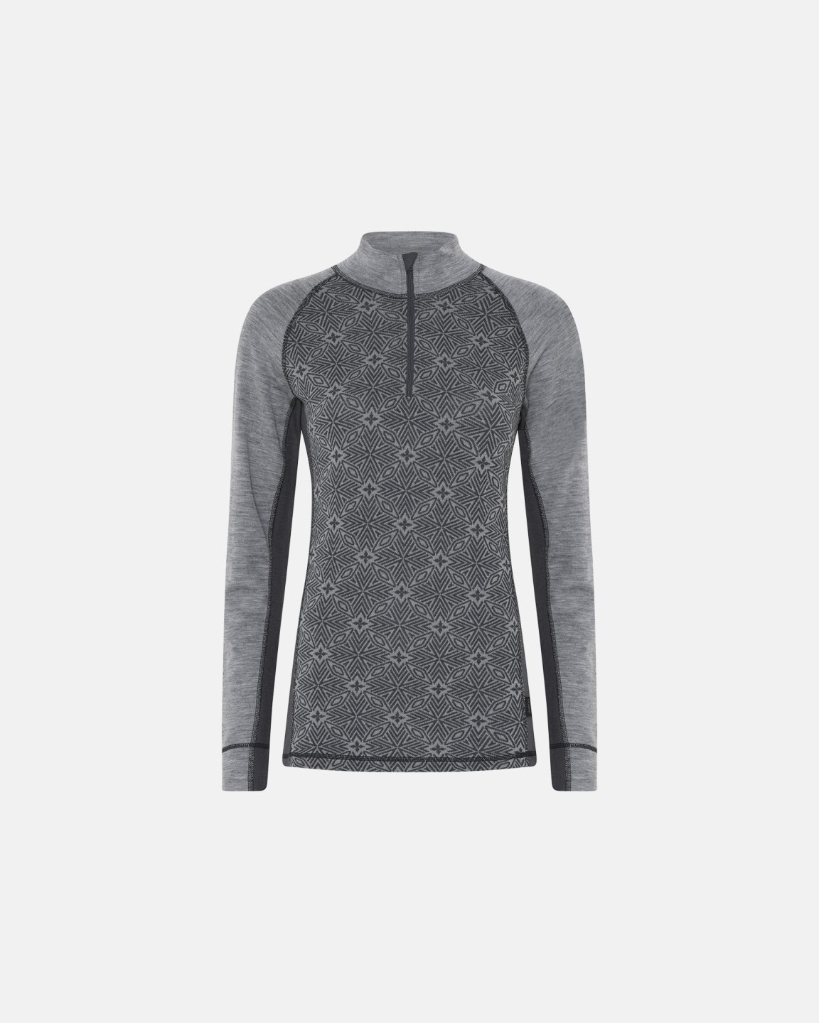 Langærmet t-shirt "half zip" | 100% merino uld | Grå - Dovre Women