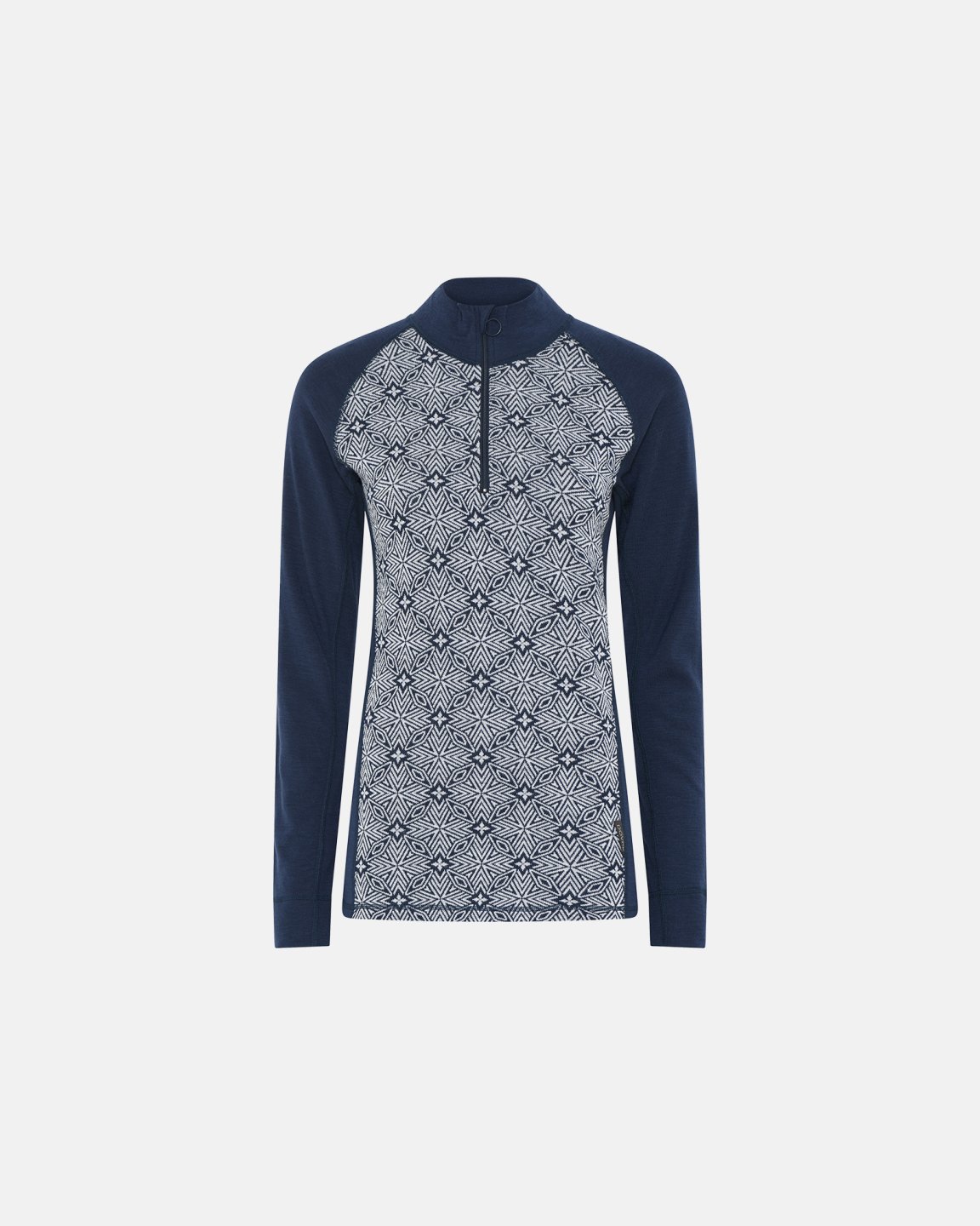 Langærmet t-shirt "half zip" | 100% merino uld | Navy - Dovre Women