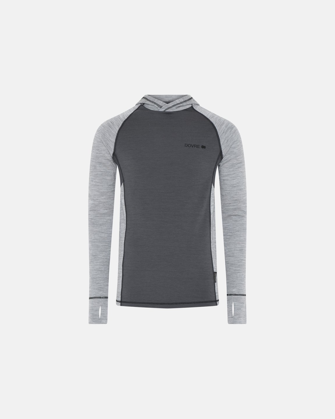 Her får du et produkt fra Dovre - et af de mest populære brands i Norden indenfor tøj og undertøj. Denne vares materialekomposition består af 100% Uld. Det er til herre og kommer i farven grå med to forskellige nuancer. Der er en hætte på og et lille logo på brystet. Har følgende certificeringer Oeko-Tex certificeret