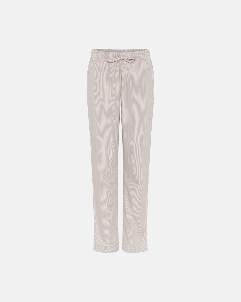 Bløde bambus pyjamasbukser i et smukt stribet mønster. Dette produkt er FSC®-certificeret. FSC®-certificeringen garanterer, at materialerne kommer fra ansvarligt skovbrug og andre kontrollerede kilder. Desuden sikrer certificeringen, at dyr og planteliv er beskyttet, og at der er passende betingelser for de mennesker, der arbejder med dyrkning af bambus. Denne vare skal helst være for lang på ben/ærmer før vask, da den typisk vil krympe 5-8% i ben/ærme-længde. (Ved strygning kan der oftest hentes et par centimer igen.)