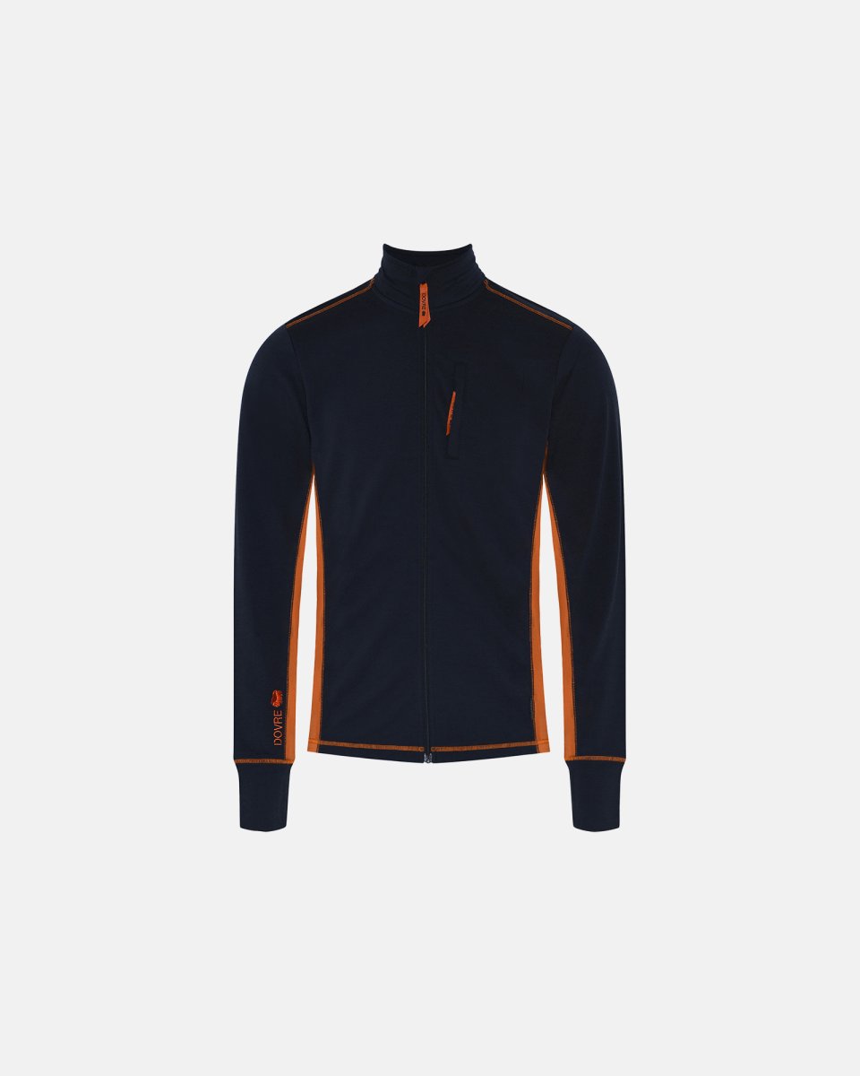 Langærmet t-shirt "full zip" | 100% merino uld | Navy/orange - L - Dovre
