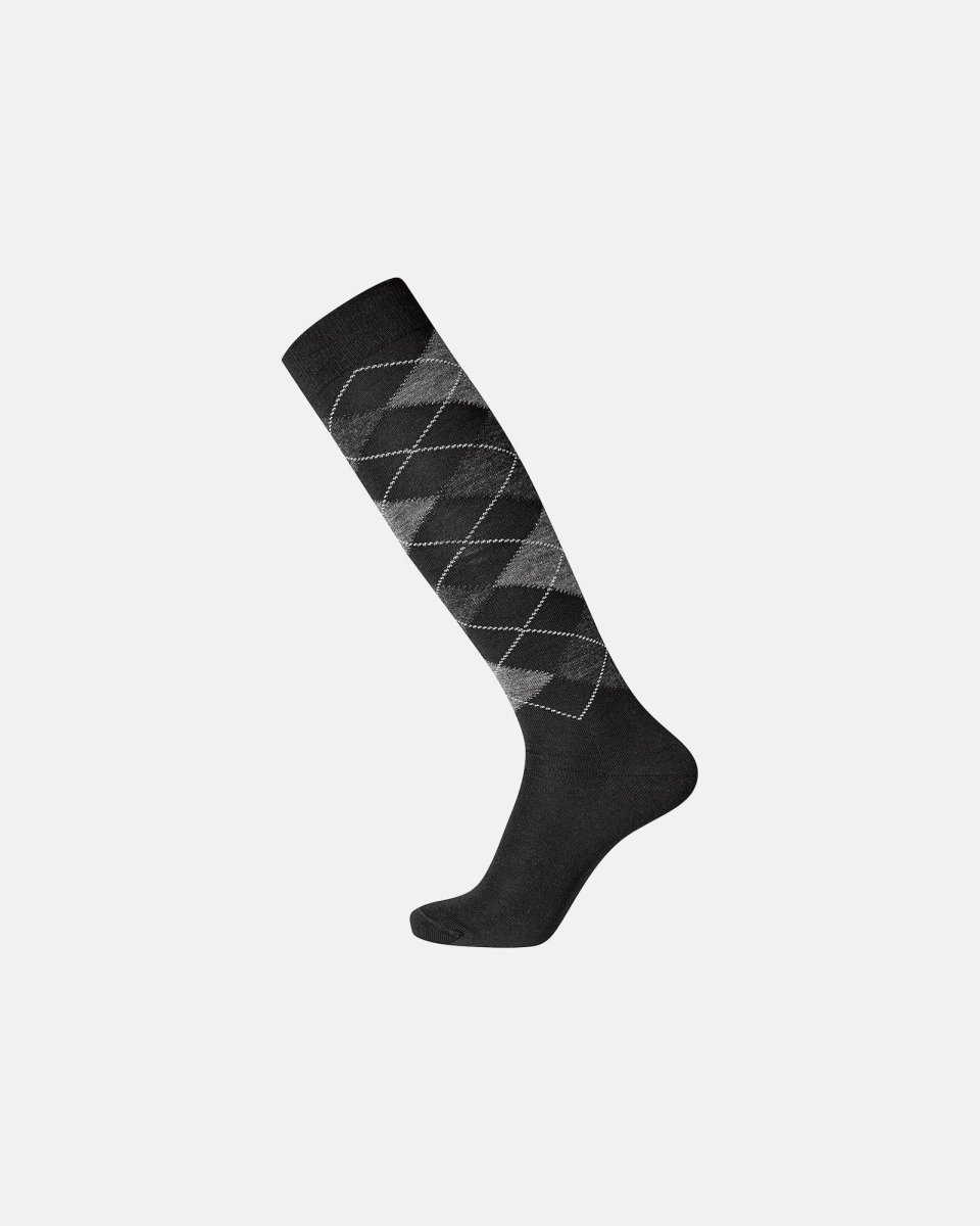 Køb Knælange strømper | 100% uld | sort mønster fra Egtved. Fremstillet i Uld i kompositionen 75% Uld, 25% Polyamid. Varen er i farven Sort og et must-have i enhver garderobe.