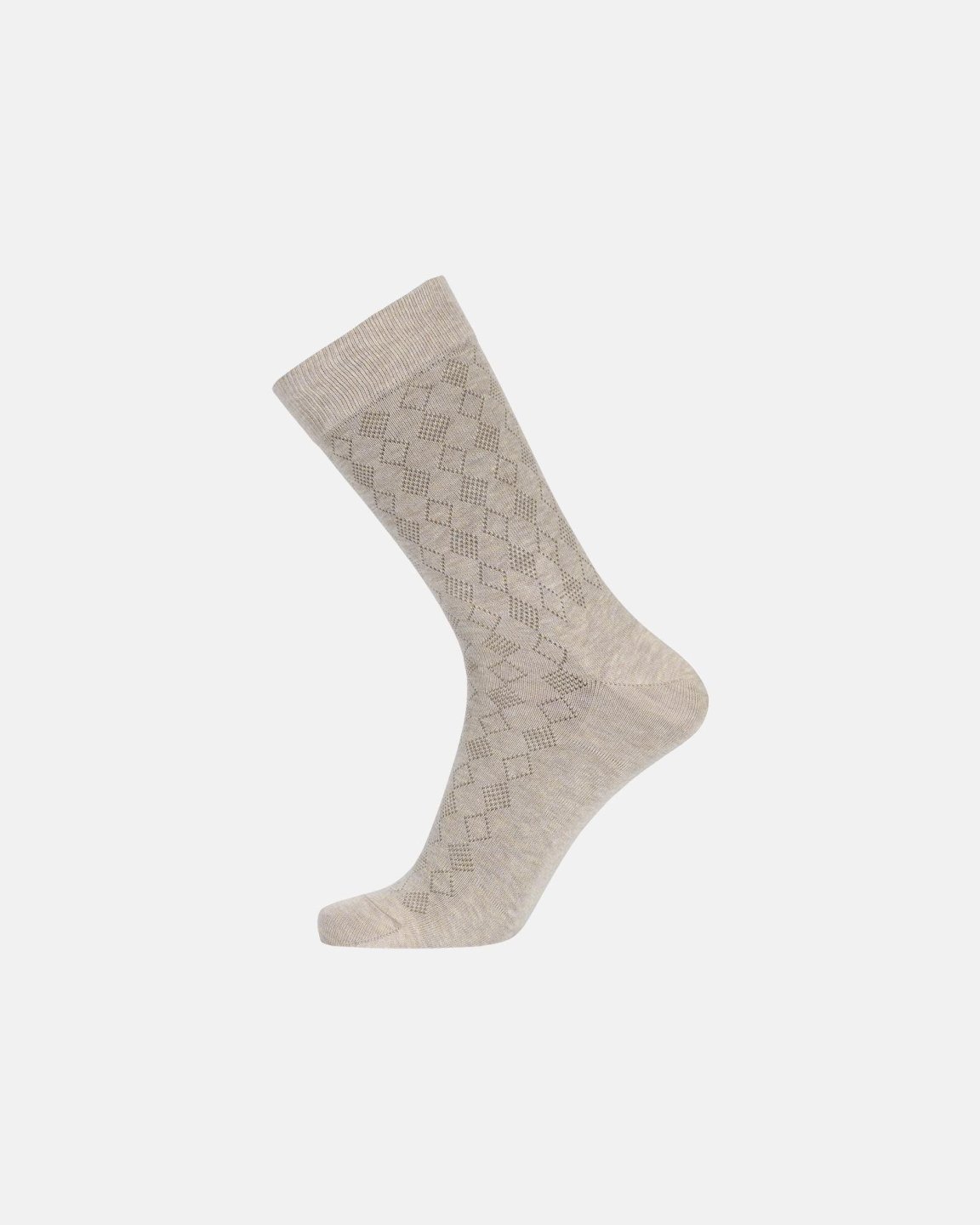 "Regular" strømpe | bomuld | beige med mønster - Egtved