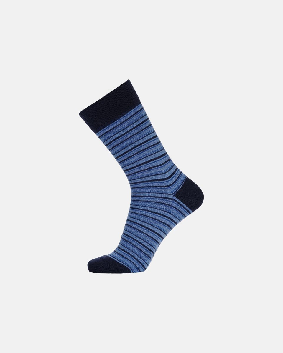 "Regular" strømpe | bomuld | blå striber - 45-48 - Egtved