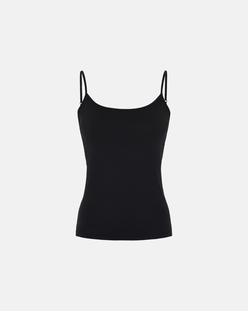 Top med smal strop, der kan justeres. Dette produkt er GOTS-certificeret (ECOCERT - 210366). Certificeringen stiller krav til den økologisk bomuld - derfor er der ikke gjort brug af farlige pesticider eller insekticider. Det er skånsom mod miljøet og de mennesker, der dyrker det. Produktionen af økologisk bomuld bruger 88% mindre vand og 62% mindre energi.