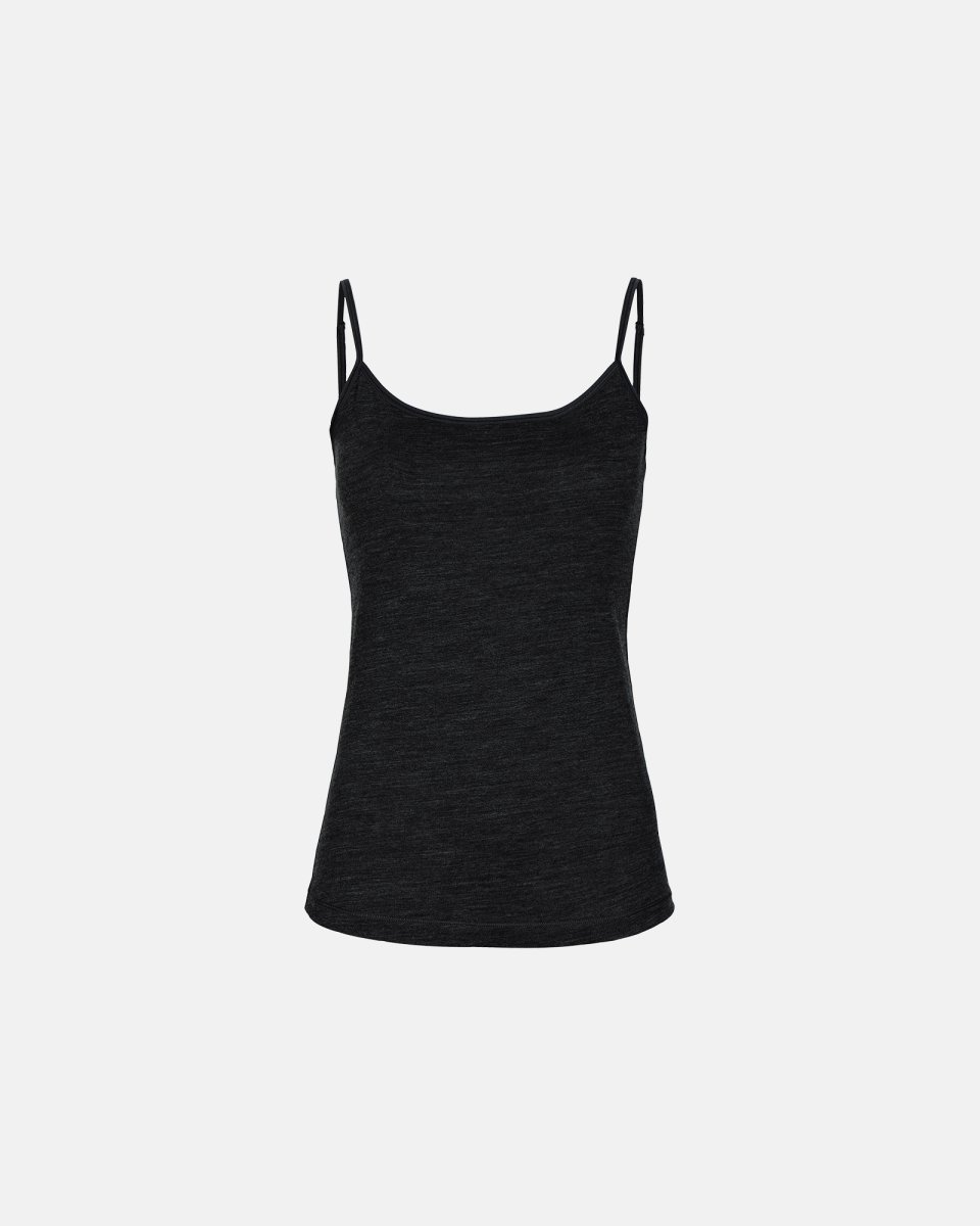 Delikat og funktionel top med smal strop, lavet af en unik blanding af organisk uld (60%), bambus-viskose (30%) og silke (10%). Ulden er absorberende, isolerende og temperaturregulerende, mens kombinationen af silke og bambus-viskose gør materialet ekstremt blødt og let.