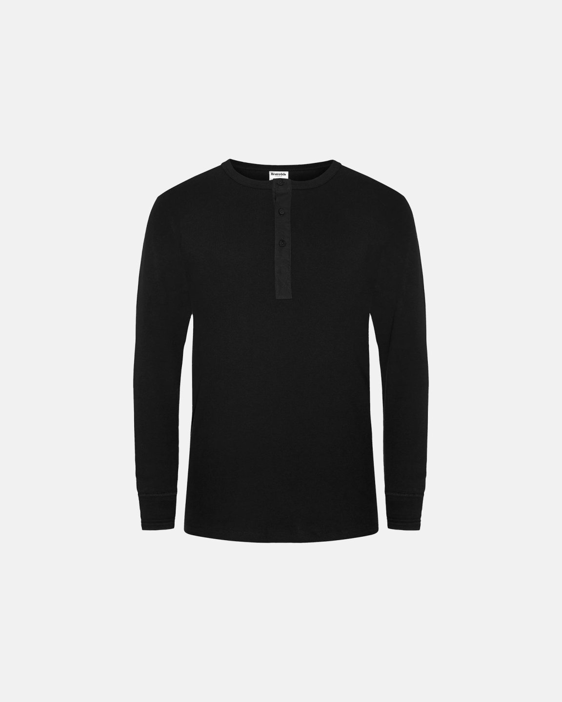 Langærmet t-shirt "grandad" | 100% økologisk bomuld | Sort - Resteröds