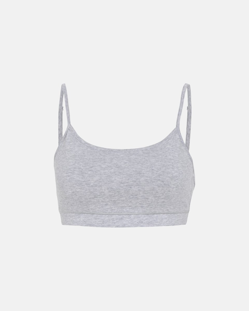 Blød og behagelig BH-top med smal strop. BH-toppen er lavet af bambus-viskose og økologisk bomuld. Vi har udviklet et unikt materiale sammensat af en omhyggeligt målt blanding af bambusviskose, økologisk bomuld og elastan. Mængden af lange korte bomuldsfibre gør produktet ekstra holdbart og reducerer pillning og gennemsigtighed. Elastan sikrer, at produkterne har den perfekte mængde stræk. bambus-viskose giver produktet bløde, antibakterielle og temperaturregulerende egenskaber.