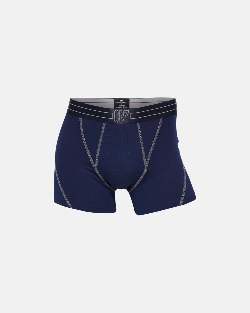 Køb et par underbukser fra CR7 i farven navy, med markerede hvide syninger som bryder det navy farvede stof. Underbukserne er fremstillet i mikrofiber, som er et tyndt stof der har en god åndbarhed, samt gode fugtabsorberende egenskaber - dette gør stoffet perfekt egnet til sport. Kompositionen beståer af 45% polyester, 45%polyamid og 10% elastan.