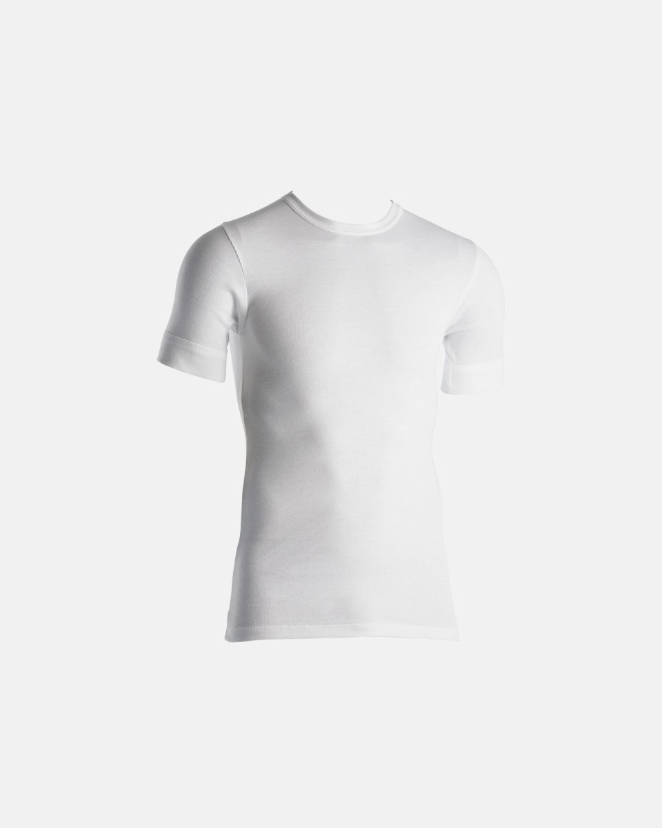 Køb en klassisk hvid T-shirt fra mærket Dovre. T-shirten er fremstillet i økologisk bomuld og i en rib kvalitet. Pasformen er tætsiddende. Find den også i sort.
