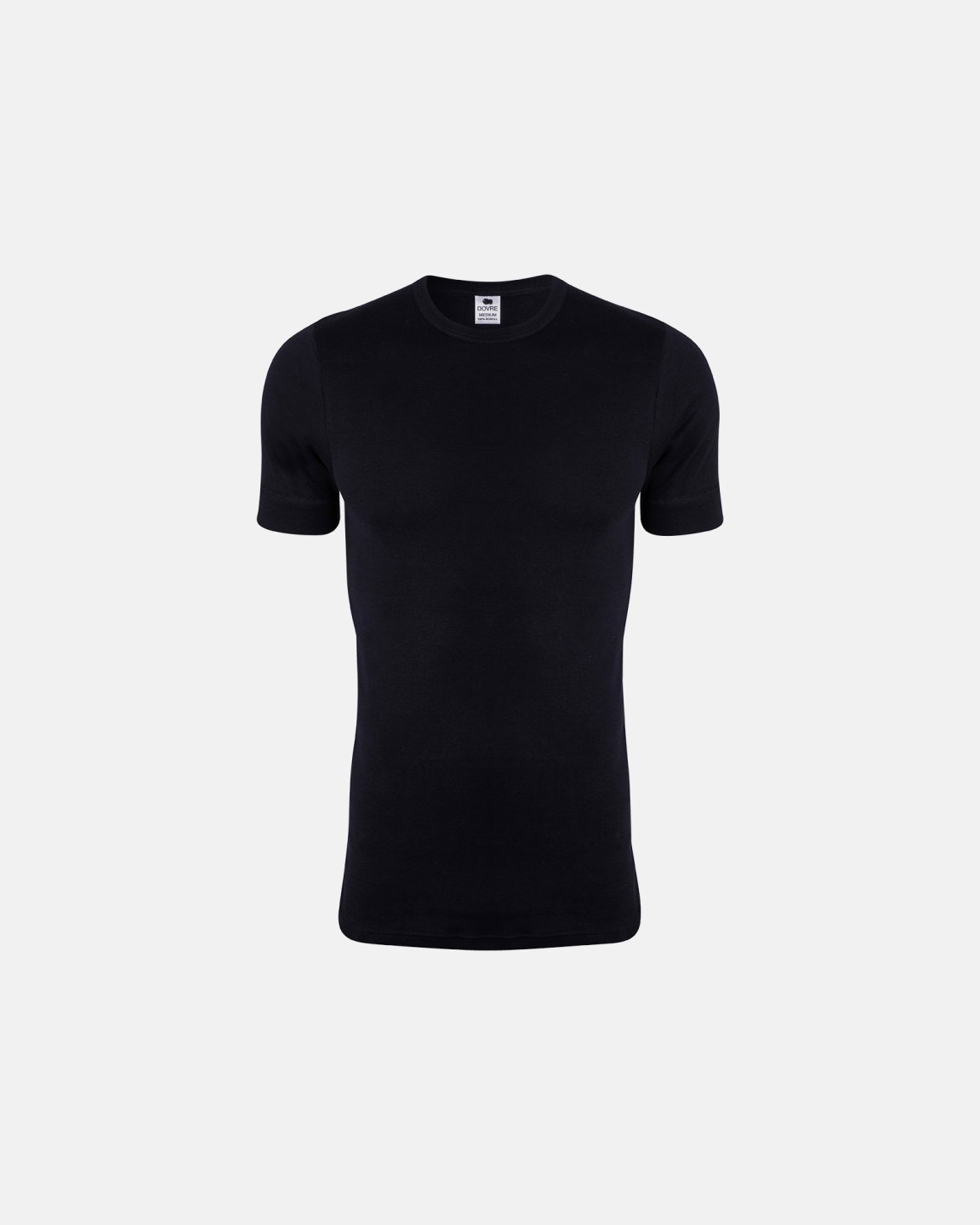 Køb en klassisk sort T-shirt fra mærket Dovre. T-shirten er fremstillet i økologisk bomuld og i en rib kvalitet. Pasformen er tætsiddende. Find den også i hvid.
