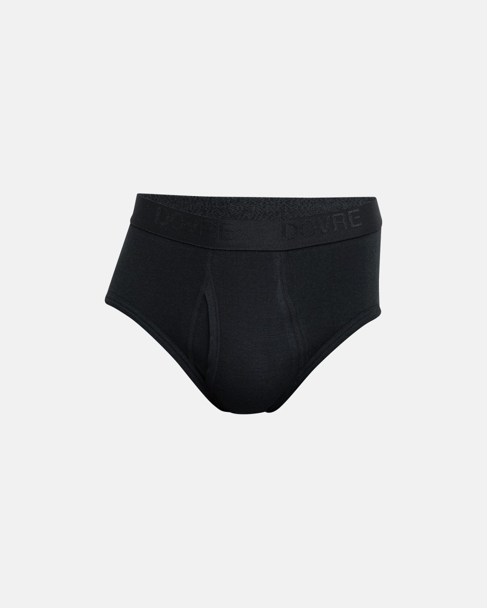 Briefs med gylp fra Dovres 660 rib serie. Modellen er fremstillet i økologisk bomuld og er i farven sort. Se også modellen i farverne grå, hvid og navy.