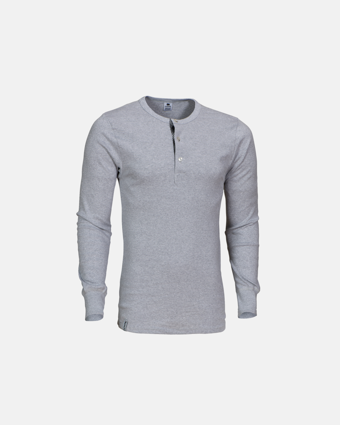 Bio-Baumwolle, Langarmshirt mit Knöpfen "Rib", Hellgrau - Dovre