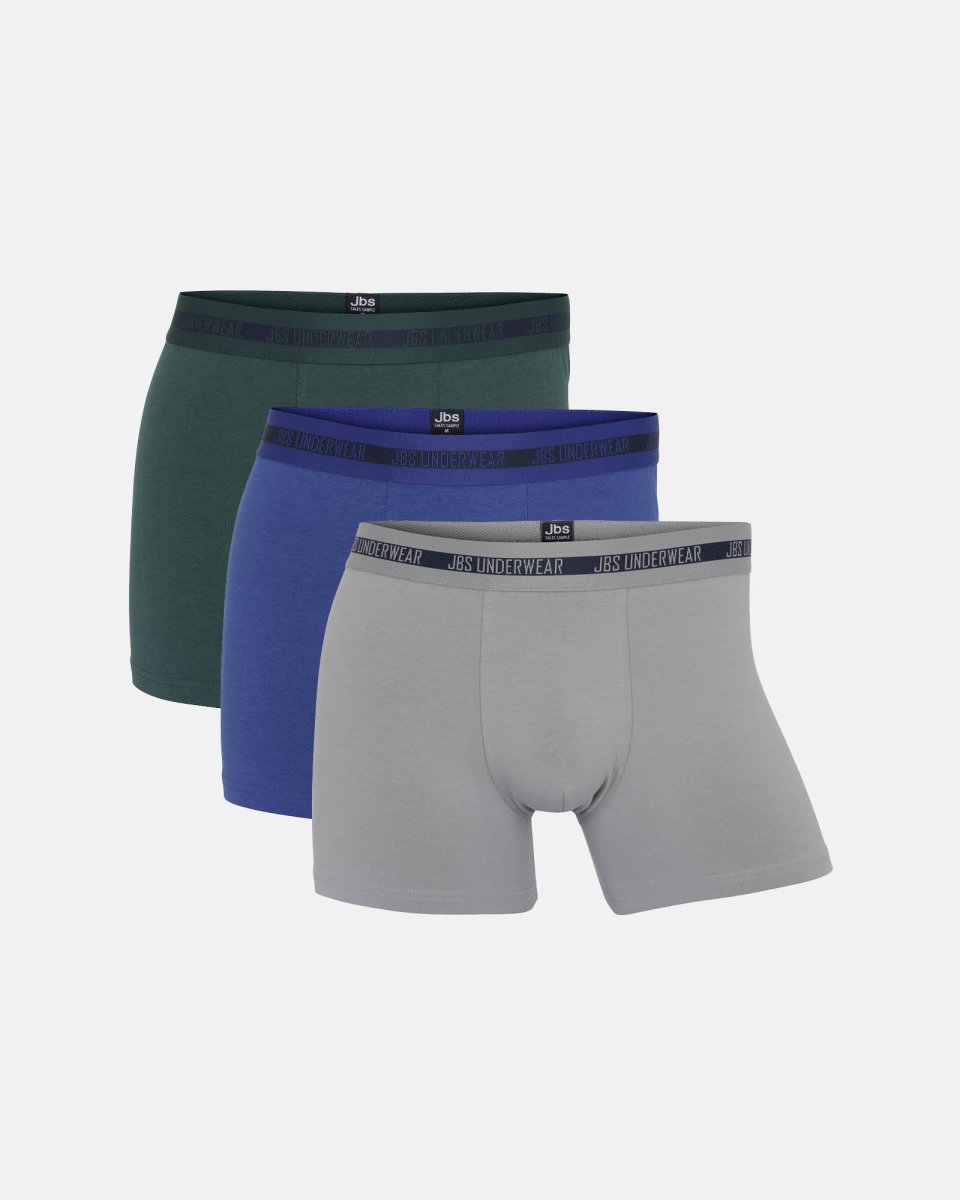 Denne 3-pak tights fra JBS indeholder et par grønne, et par blå og et par grå underbukser. Underbukserne er produceret i bambusviskose, som er fremstillet i et lukket kredsløb, hvor alt vand og kemikalier bliver genbrugt. Det gør disse tights i bambusviskose væsentlig bedre for miljøet end konventionelle tights i bambusviskose. Det er stadig den velkendte kvalitet fra JBS, så pasformen er lige så god og velprøvet som altid.
