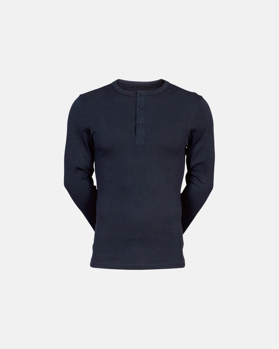 Langærmet t-shirt "grandad" | 100% økologisk bomuld | Navy - L - JBS