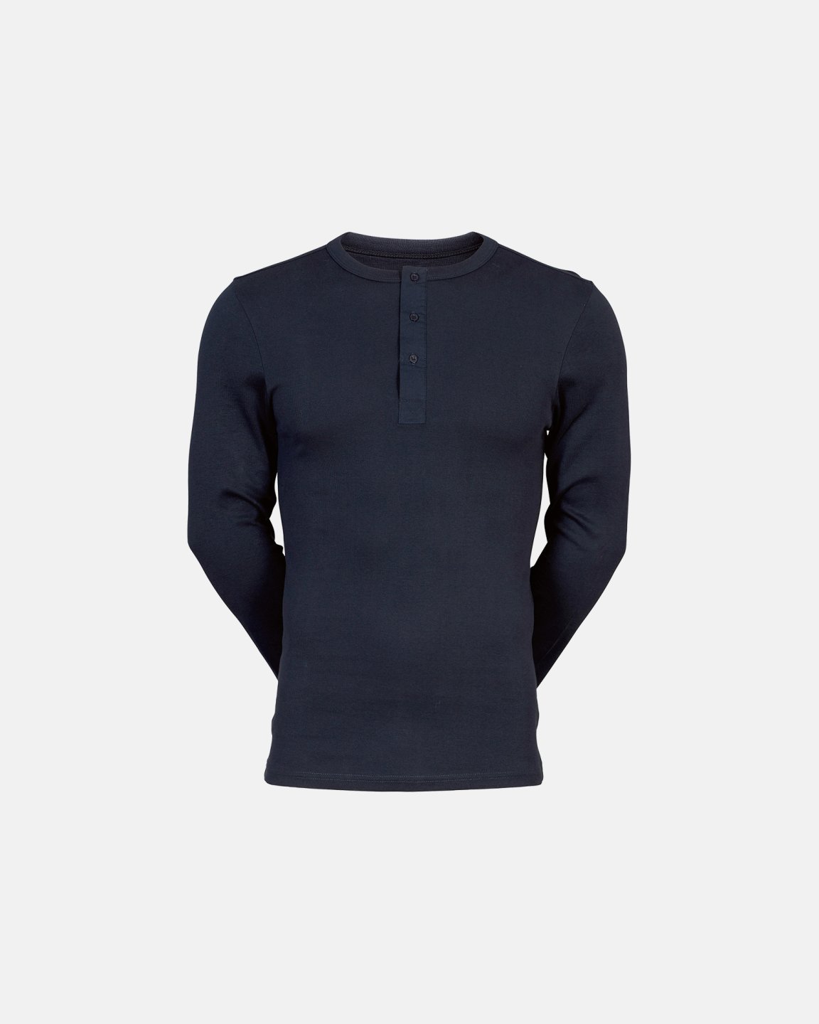 Langærmet t-shirt "grandad" | 100% økologisk bomuld | Navy - JBS