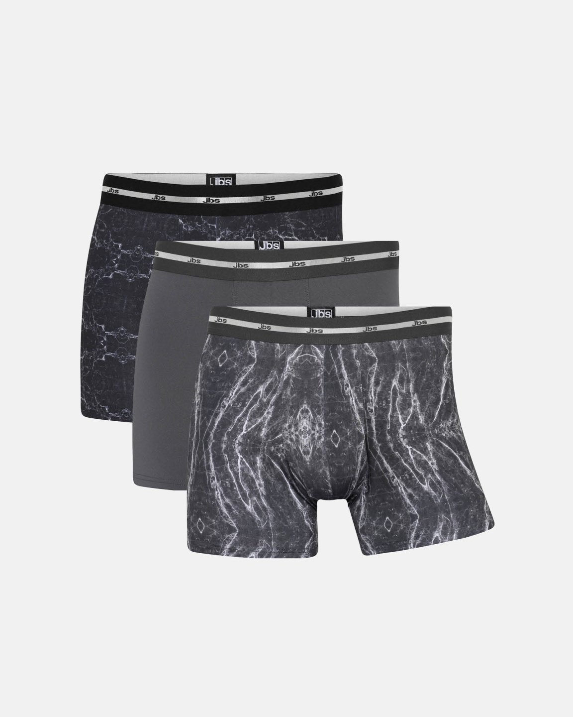 3-pak tights fra JBS i smarte grålige nuancer med mønster.Underbukserne er produceret i genanvendt polyester. Det tager mere end 1000 år for en plastflaske at nedbrydes i naturen. Plastflaskerne formes til en flydende masse, som ender som en polyestertråd. Denne tråd har det samme udseende og giver følelses af en lækker blød kvalitet.