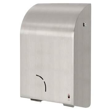 DAN DRYER STAINLESS DESIGN toiletpapirrulleholder er en raffineret toiletpapirrulleholder i børstet, rustfrit stål, der passer til alle øvrige produkter i DAN DRYER STAINLESS DESIGN serien. Holderen rummer 1 JUMBO-rulle samt 1 reserverulle i standardstørrelse. Når den store rulle er opbrugt, falder den lille automatisk på plads. De tomme papspoler bliver inde i holderen. Konceptet med at kombinere en JUMBO-rulle med en mindre reserverulle i standardstørrelse imødekommer ønsket om at kunne anvende de store, prisrigtige JUMBO-ruller - samtidigt med, at man opnår minimalt papirspild. Toiletpapirrulleholderen sælges med 2 års reklamationsret!