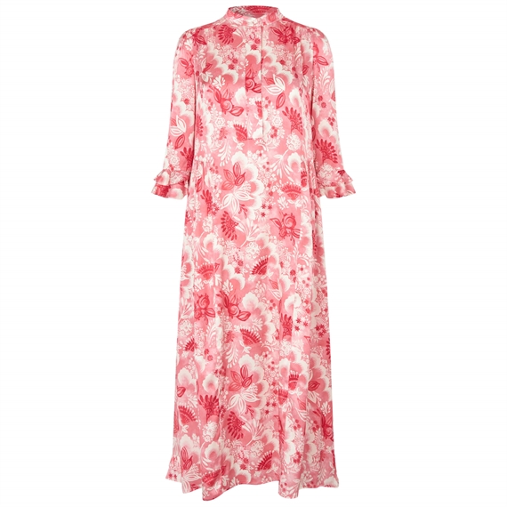 Den fineste Rosanna Kjole i den flotte Eden Berry print. Denne Rosanna kjole har det smukkeste print, som giver en følelse af forårs-og sommervibes. Kjolen har en kinakrave, hvor den lukkes ned til midten langs fronten med knapper, derudover har den flæser på ærmerne. Style den om sommeren med et par sandaler og i de kolde måneder med dine favorit strømpebukser og et par loafers.