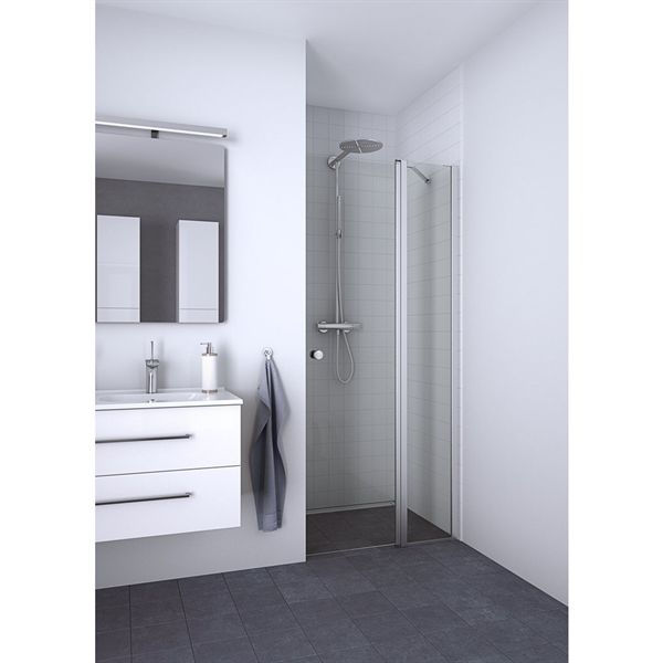 Dansani Match svingdør med sidepanel 87-89 cm er en del af Dansani Match Serien, der består af en bred serie af bruseløsninger som leveres i mange størrelser, der i kombination med hinanden kan sammensættes til fx hjørneløsninger enten med to svingdøre eller med foldedøre eller med sidepaneler samt svingdøre.