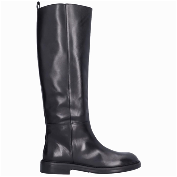 Håndlavet langskaftet støvle, udført i sort glat skind med rund tå. Støvlen er dekoreret med en strop bagpå. En klassisk og elegang støvle.