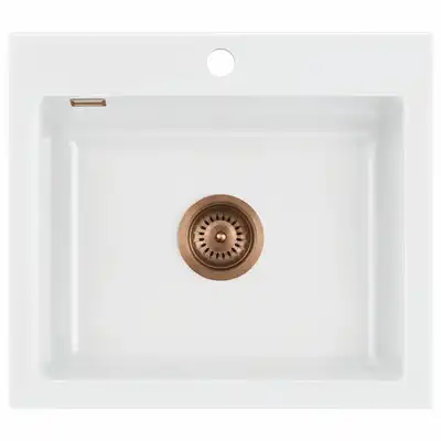 Lavabo Mera 57 hvid køkkenvask 57,5 x 51 cm i keramik til nedfælding med kobber bundventil