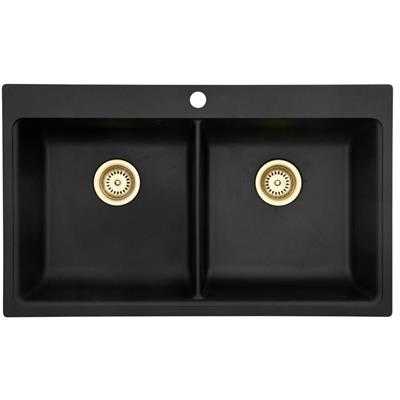 Lavabo Saturn 86 dobbelt Køkkenvask 86x51cm m/messing kurveventil, Nedfældning