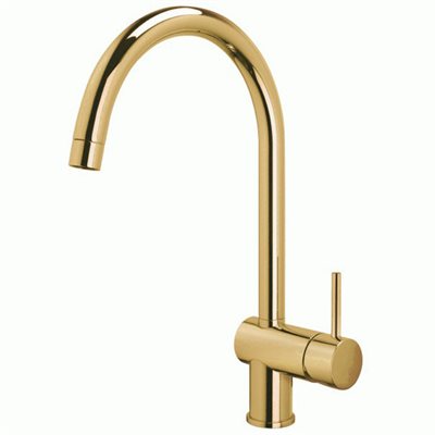 Stilren køkkenhane med runde bløde linjer og høj C-tud og et elegant greb med rund betjeningspind.
