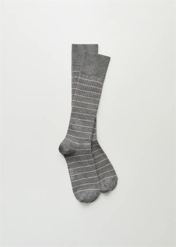 En let, ribstrikket strømpe fremstillet i en blød blanding af genanvendt og økologisk bomuld. Designet i en fleksibel pasform med raffinerede striber. Strømpen har forstærket hæl og tå for komfort og holdbarhed, og et dekorativt aiayu-logo er printet under foden.