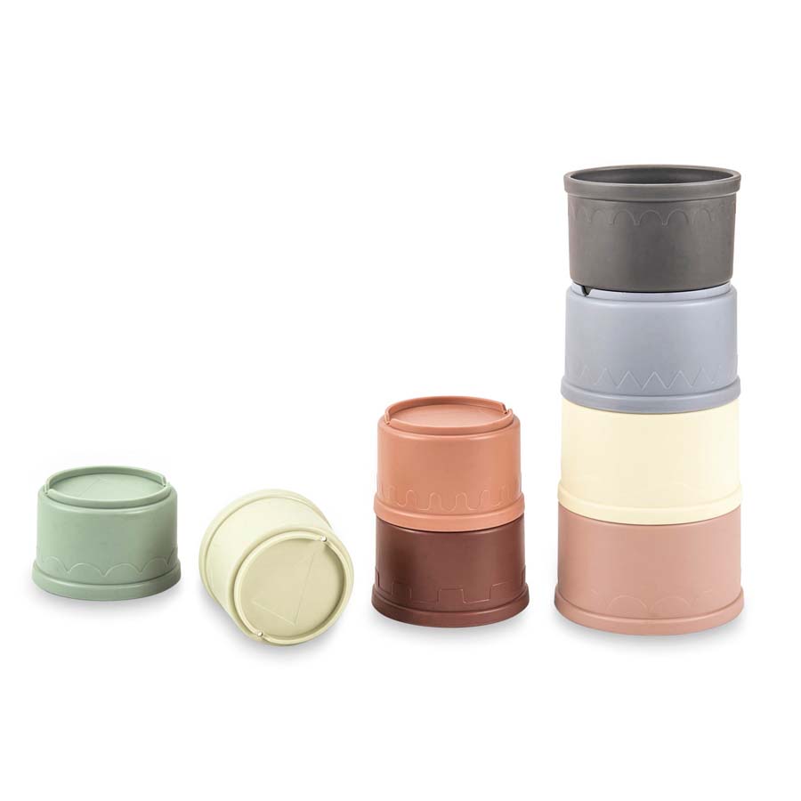 Sæt med 8 sjove stablekopper fra Scandinavian Baby Products i fine naturlige farver. Kopperne kan stables oven på hinanden til et højt tårn, eller de kan lægges ind i hinanden, så de næsten intet fylder. I bunden af alle kopperne er der udstanset huller, der gør dem ideelle til sjov plaskeleg med vand i badekarret, i badebassinet eller i sandkassen. Er kopperne blevet beskidte, kan de sagtens tåle at komme en tur i opvaskemaskinen. Materiale: ABS Plast - 100% fri for BPA, PVC og phthalater Mål: 21 x 6,8 x 7,2 cm. Fra 1 år. Se alle varer fra Scandinavian Baby Products