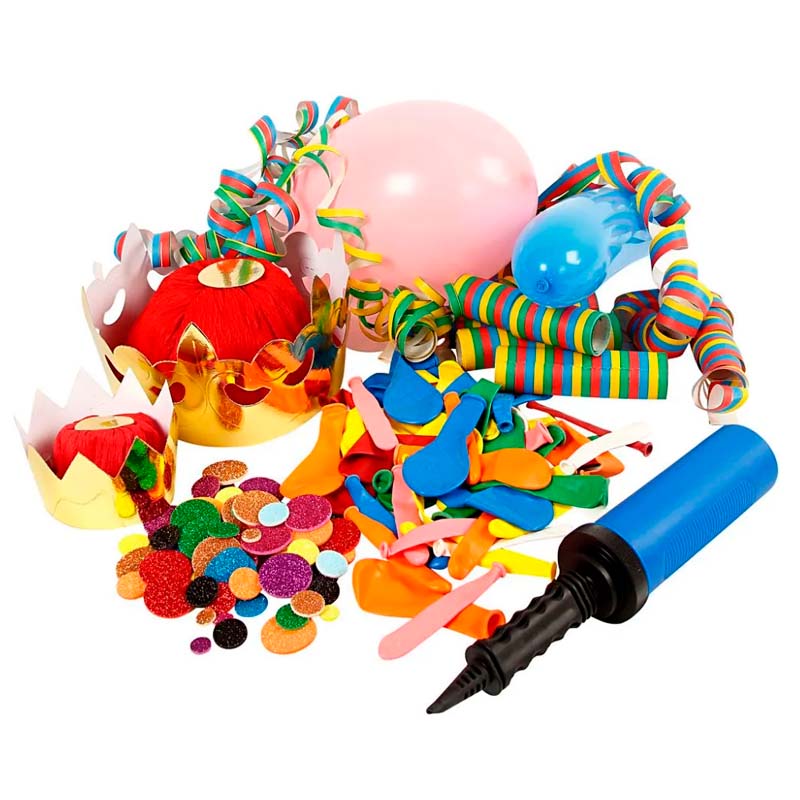 Det ultimative sæt til at fuldende fastelavnsfesten. Her er glitrende mosgummicirkler med selvklæbende bagside og serpentinere, der kan bruges til at dekorere fastelavnstønden med. Der er desuden masser af balloner i forskellige farver og en ballonpumpe til at puste dem op med, og når tøndeslagningen er overstået, er der en krone til den nye kattekonge og -dronning. Se alle varer fra Bødkeriet