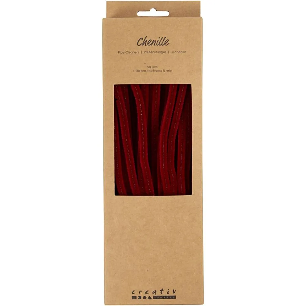 Chenille 50stk, 30 cm, 6 mm, mørk rød, udsolgt