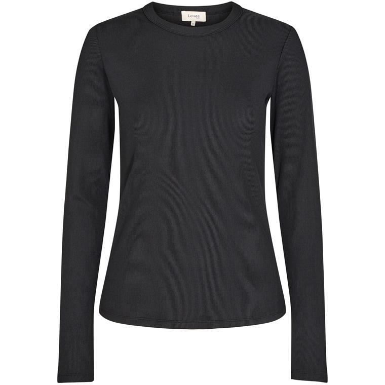LR-NUMBIA 3 fra Levete Room er den skønneste langærmet basis t-shirt med lækker ribbet struktur. Denne lækre basic t-shirt er i denne skønne klassiske sorte farve, som passer perfekt året rundt. Den er udformet i en lækker og blød bomuldskvalitet med ribbet struktur. LR-NUMBIA 3 er den helt perfekt basis style, som du bare kan hive frem igen og igen, sammen med et par jeans, shorts, en nederdel - ja mulighederne er mange!
