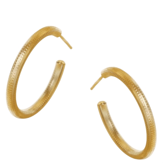 Esme Creol Slim øreringene er vores udgave af de klassiske kreoler, en ørering med evig aktualitet. Øreringene har den håndfilede, riflede overflade som karakteriserer smykker fra Dulong.Den klassiske facon giver øreringene et diskret udtryk og gør dem anvendelige til alle lejligheder.